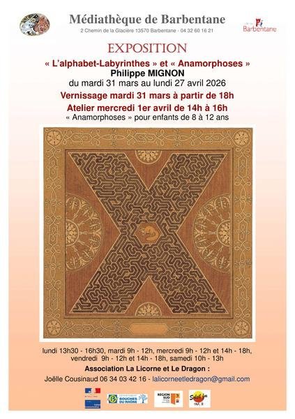 L'association La Licorne et le Dragon présente "L'alphabet-Labyrinthes" et "Anamorphoses" de l’artiste Philippe Mignon.